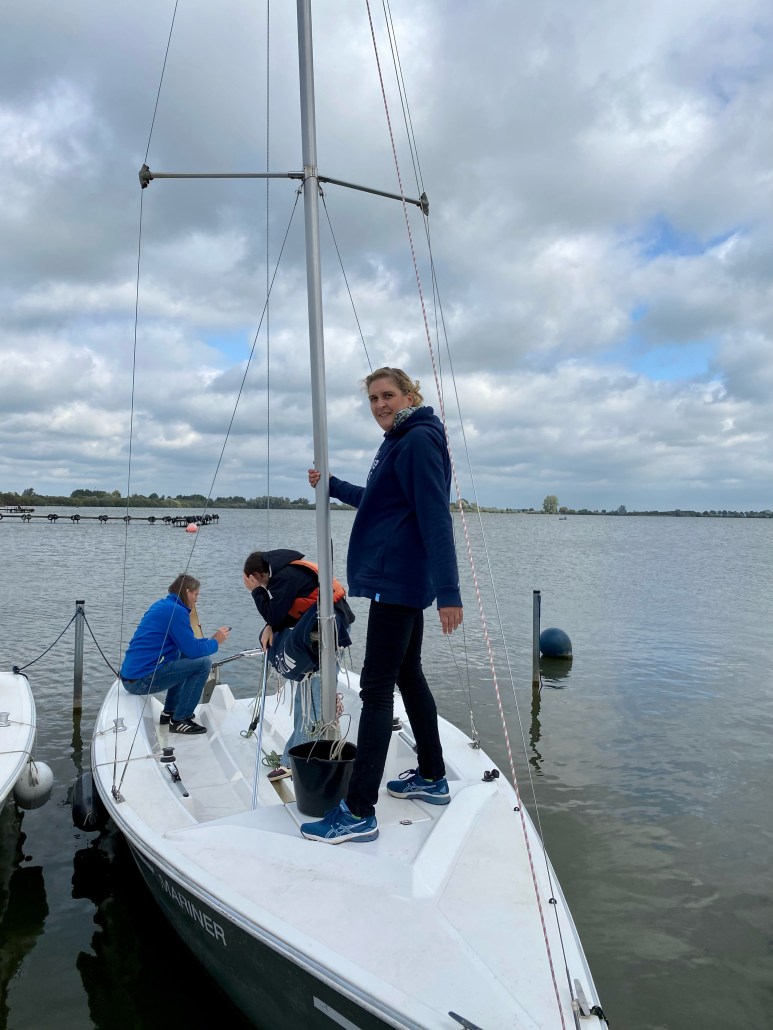 Segeln ist wie kaum eine andere Sportart eine Grenzerfahrung, verbunden mit einer hohen Selbstwirksamkeit und einer anfangs recht steilen Lernkurve. Nach einer kurzen Einweisung segelten die Teilnehmerinnen und Teilnehmer zu dritt mit einem Segellehrer in einer Jolle über den Dümmer und konnten nach kurzer Zeit das Boot selbst steuern, an- und ablegen und wenden. Durch kleinste Bewegungen mit der Pinne oder der Großschot haben sie den Kurs gehalten, sind abgefallen oder haben angeluvt, aber nicht gekentert. Das wäre aber auch nicht schlimm gewesen, denn der Dümmer ist durchschnittlich 1,20 m tief. …. Selbsterfahrung – Selbstwirksamkeit pur.